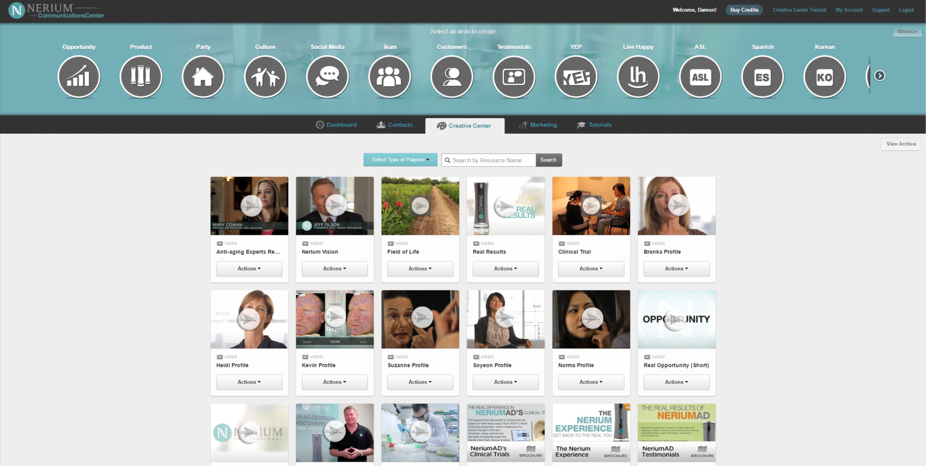 Different range of resources that could not place at the same place. Nerium International provides video resources for New Brand Partners to learn about business, other resources for Brand Partners to prospect new people, and Marketing Materials for internal sharing.