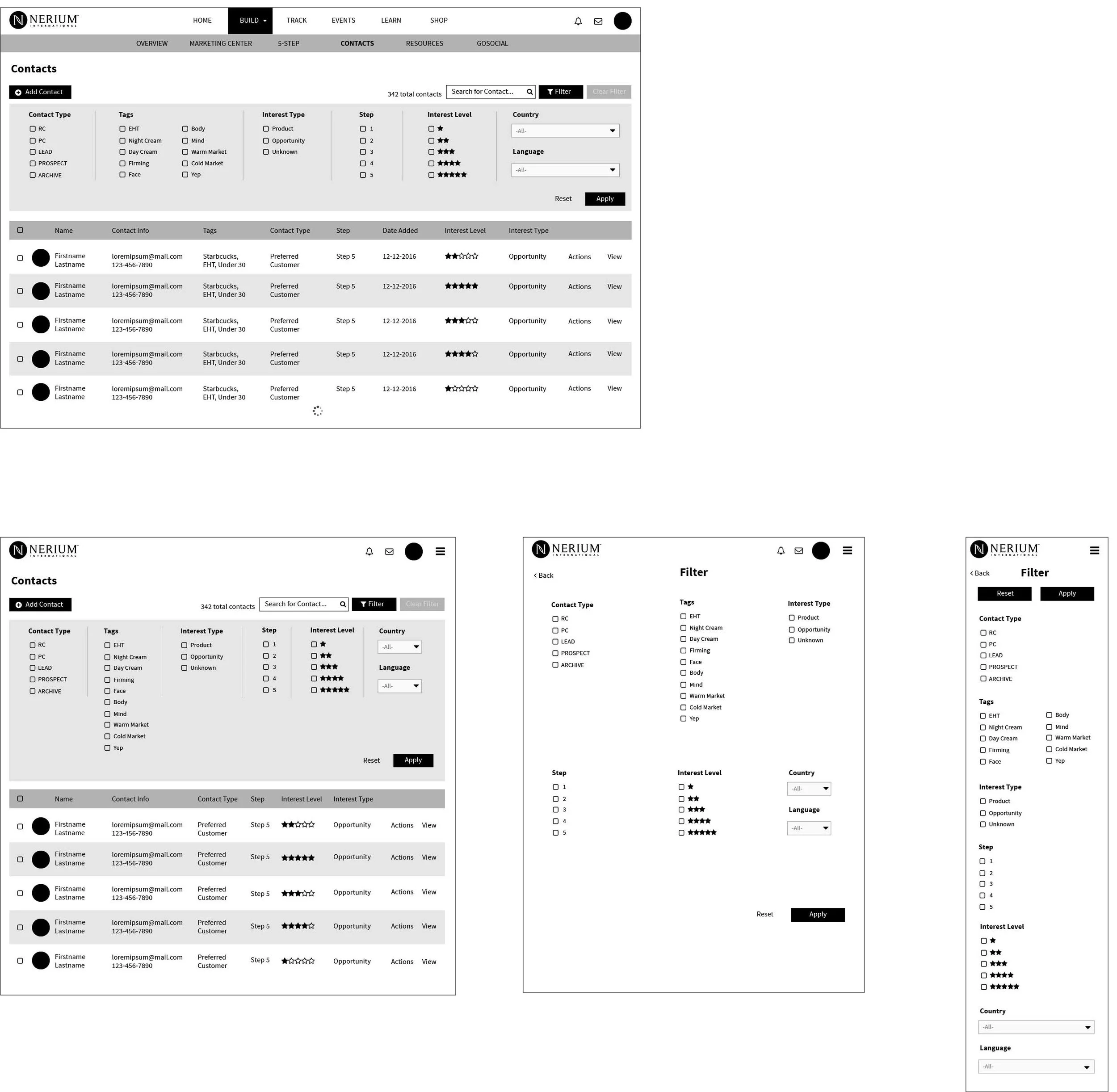 Created a Top Hidden Content filtering options on the top of the Contacts page. Because it won’t spend space to show all columns of contacts. Filters at the top eliminate the navigation confusion, and the narrow screen coupled with a large number of filters may cause stacking and not as good presentation